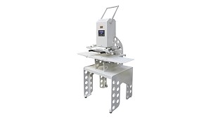 campo del estampado en caliente profesional. Mesa de trabajo retráctil para una colocación muy cómoda y topes magnéticos para posicionar objetos. La calibración automática le permite hacer coincidir perfectamente la altura