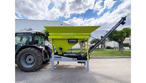 campo, almacén o sitio designado. 2.800 - 3.300 kg/hora de cáscara dependiendo de las variedades y el estado de los frutos. · Enganche trasero para remolque. · Sinfin hidráulico para descarga del fruto