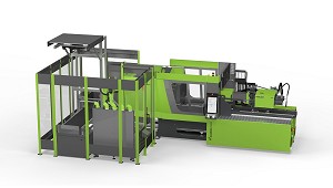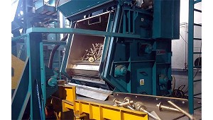 colada dentro del molde. Las piezas, junto con la colada, caen sobre una cinta transportadora inclinada que las dirige a la celda de automatización. En este punto, un sistema de cámaras
