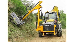 divisora de caudal. - Mandos eléctricos. - Patas de apoyo mecánicas. - Motor directo reversible. - Faldón trasero antiproyeción. - Rodillo posicionador completo. - Válvula de seguridad automática. - Refrigerador de aceite. -Potencia de corte 30 CV. (Brazos
