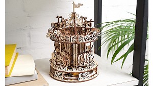 feria está diseñada hasta el más mínimo detalle. Encontrará dos tipos de caballitos que suben y bajan conforme gira la maqueta. El núcleo de la maqueta es el poste central