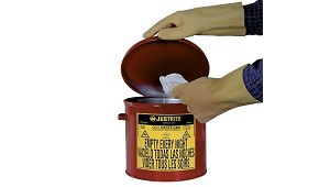 tapa que permanece cerrada cuando no está en uso. Aísla el contenido de fuentes de fuego y limita el oxígeno disponible. Construcción redonda y base elevada que permite la circulación