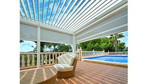 tela recogida. Para una mayor comodidad y una mejor vida útil del toldo podemos optar por la posibilidad de un motor accionado con mando a distancia. Los toldos de veranda