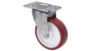 86/80 X 60) / 105 X 80. - Diámetro agujero sección platina: 8 - 10. - Altura total: 110 – 242. - Radio de giro: 77 – 153. (Ruedas y rodillos sólidos para carretillas, transpaletas y carros)