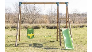 Parque infantil Con una plataforma con rampa de tobogán y un columpio doble Masgames Milos con asiento bebe - Masgames Active Toys, S.L.: La estructura Milos es un parque infantil con