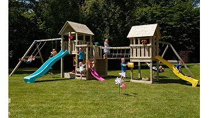 Combinación de parque infantil Espectacular estructura que combina la Torre Penthouse con la Torre Kiosk Masgames Himalaya - Masgames Active Toys, S.L.: Espectacular conjunto HIMALAYA, en el que están unidos por