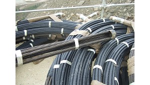 cada cordón, con un tubo de PE de 1,5 mm de espesor, protegido interiormente con cera anticorrosiva a lo largo de toda la longitud. Los punteros son de PE y los espaciadores