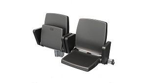 cada usuario. La butaca y sus complementos se fijan sobre un rail que permite tener un rango amplio de configuraciones, además de disponer de distintos acabados y complementos para cada