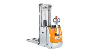 Still EXV-SF 14-20 - Still, S.A.U.: El apilador EXV SF es rápido, robusto y nteligente. Con su plataforma abatida y sus protecciones laterales desplegadas, acelera hasta su máxima velocidad