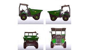 carga 4.000 kg; bulón de arrastre; techo protector del conductor; luz intermitente superior; cuenta horas; avisador acústico de marcha atrás; cinturón de seguridad y asiento regulable y ergonómico. (Volquetes (dúmpers) de obra)