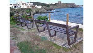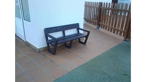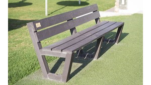 Banco básico De plástico reciclado - Representaciones Martín Mena, S.L.: Banco “Básico” con respaldo fabricado 100 % en plástico reciclado, un material extremadamente duradero al que, a diferencia de la madera o el acero