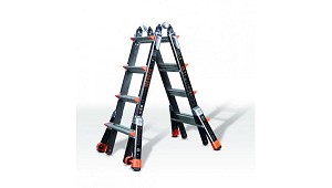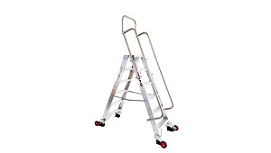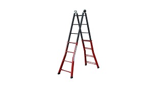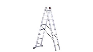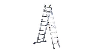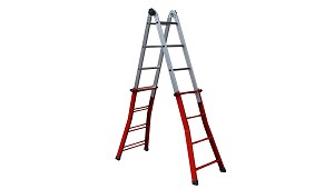 escaleras de más de 3 m de altura en apoyo. Disponible también en escalera de un tramo y escalera de tres tramos se utiliza tanto en apoyo a pared como en posición de tijera. (Escaleras multiposicionales)