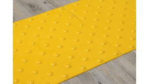 escaleras seguras Alertile - Gerflor Iberia, S.A: Producto y diseño: - Loseta táctil para advertencia frente a un escalón. - 3 colores para asegurar el contraste: gris claro - gris oscuro - amarillo. - Dimensiones: 838 x 426 mm / 1363 x 426 mm. - Diámetro