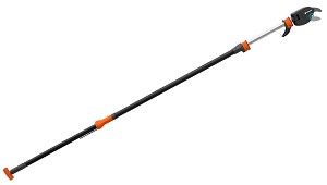 escalera, y con total seguridad y comodidad. Gracias al mango telescópico extensible con una longitud de entre 230 y 410 cm se consigue un alcance total de 6,5 m aproximadamente