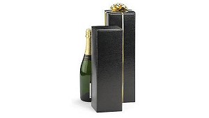 vistoso cartón satinado de 140 g/m.² Elegante: interior en negro. Adecuado para botellas de vino espumoso, vinos, licores. Se entrega en plano. Paquete de 50 estuches. (Cajas y bandejas expositoras)