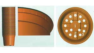 Macetas redondas y contenedores Fondos con aberturas múltiples Teku Premium - Pöppelmann Ibérica, S.R.L. - División Jardinería: Pöppelmann Ibérica, en su división de jardinería, diseña los bordes de facetas para las macetas