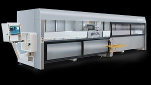 Vertmax One es el centro de mecanizado vertical dedicado a la producción de puertas, cabinas de ducha, balaustradas y mobiliario interior/exterior; puede mecanizar chapas de hasta 3000x1500 mm (Centros de mecanizado verticales)