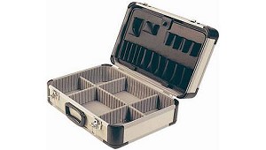 portaherramientas extraíble. Cierre de horquilla con llave. 3 Bisagras de compás. Estructura de aluminio. Moldura reforzada y cantoneras de acero cromadas. Cuerpo abs. Color gris (Cajas y maletines de herramientas)