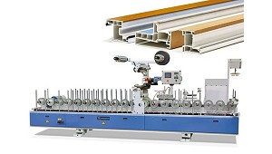 molduras para perfiles de pvc o aluminio - Barberán, S.A.: Máquina recubridora especialmente adecuada para recubrir perfiles de aluminio o PVC, ya que en la misma bancada incluye una estación para