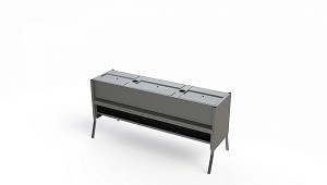 punzonado. La fabricación mediante tornillos no por soldadura. Da mayor duración y resistencia al producto. Patas fabricadas en tubo galvanizado por inmersión en caliente. Preparada para acoplar tubos de reparto