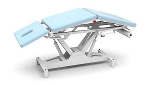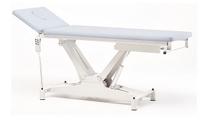 Tapizado de espuma ignífugo y resistente a la luz. - Carga máxima: 170 kg. - Doble actuador eléctrico de 6000N cada uno. - Función tend-antitrendelemburg de hasta 28º, para tratamientos de fisioterapia