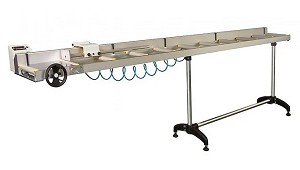 S.r.l.: Tope de apoyo con posicionamiento electrónico motorizado. Disponible en las versiónes 3 - 4,2 y 6 metros. Accesorios de serie: - Rodillos de plástico. - Embalaje en cartón. (Bancos de trabajo)