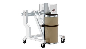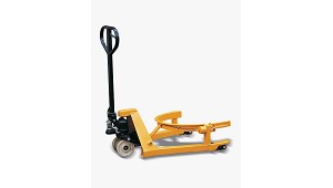 transpaleta, para manipular barriles metálicos de 200 litros verticalmente. De esta manera se consigue mover barriles de una manera ràpida y económica. El manipulador dispone de un timón como el de una transpaleta