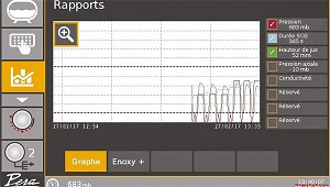 vinos (cantidad de fangos, extracción rápida del mosto = limita la oxidación) y la organización de los aportes de uva. Esta es la información que se puede visualizar: Presión aplicada por la membrana