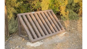 plazas Fauno - Representaciones Martín Mena, S.L.: Aparcabicis “Fauno” de plástico reciclado 9 plazas es una solución ideal para entornos naturales y rústicos. REF: 80101. Material: fabricado con plástico 100% reciclado