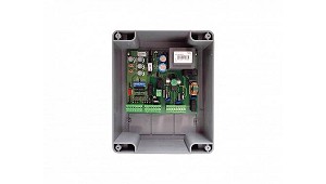 bornes Antena / Stop / Start / Start peatonal / - Fotocelulas 1 y 2 / Costa - Salida de bornes Alimentación accesorios 24V / Motores 230V 500W x 2 / Electrocerradura 12V 15VA max/ Alim. 24V TX fotocélula