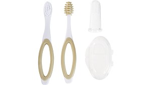Set de 3 cepillos de dientes Evolutivo Tigex - Mapa Spontex Ibérica, S.A.U.: Dedo de silicona: + 3 meses Cepillo de aprendizaje: + 6 meses Cepillo mayores: + 12 meses (Cepillos dentales infantiles)