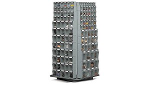 Expositores para contenedores basculantes Ideal para mostrar un abanico de piezas - Disset Odiseo, S.L.: Disset Odiseo dispone de expositores de estructuras metálica en color gris claro Ral 7035 con zócalo