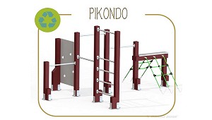 estructura "Pikondo" en plástico reciclado con 25 años de garantía sin mantenimiento contra el agrietamiento, astillamiento y el deterioro. Recomendado para niños de 6-14 años (12 personas). (Parques infantiles)