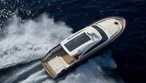 salón a la bañera, creando un único espacio, gracias a su gran puerta de vidrio abatible. - El agradable puesto de gobierno situado en el elevado flybridge, acompañado por una dinette