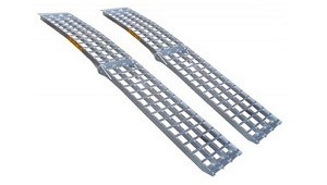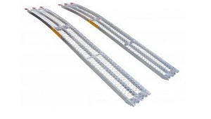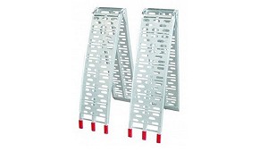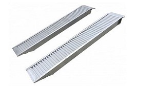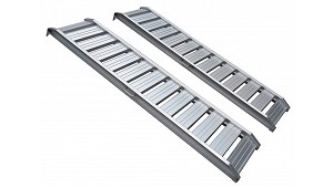 segadoras de radio cero, mini-tractores, quads, etc. - Tipo: curvada. - Material: aluminio. - Perfil: anti-deslizante. - Longitud (plegadas): no plegables. - Longitud (total): 226 cm. - Ancho: 30 cm. - Capacidad máxima: 680 kg (el par). (Rampas