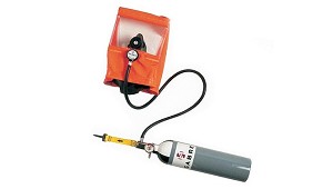 aire alimentada por un compresor. Se utiliza para aplicaciones industriales tan diversas como introducción en alcantarillados, limpieza de depósitos y pintura a pistola. (Equipos de respiración y filtración de aire