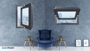 bisagras, kit de fijación, cierres perimetrales y cierres complementarios. ¿Por qué elegir Easy Pivot? Easy Pivot está compuesto por un par de bisagras de aluminio extruido con un diseño moderno