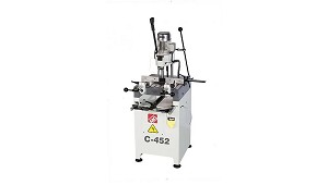 bisagras y toda clase de ranurados y fresados mediante plantilla o topes reguladores, en toda clase de perfiles de aluminio, plástico, etc. Refrigeración automática por pulverización y pisadores neumáticos. Arranque