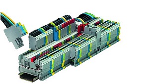 bornas bases pueden ser tanto en versión tornillo (UK 6 FSI/C) como en versión resorte (ST 4 FSI/C). Ambas familias de bornas permiten, vía puentes, distribuir el potencial a diferentes