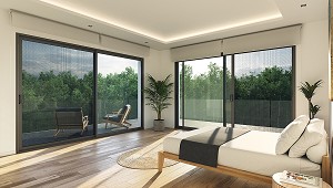 calidad. Para una mayor versatilidad, también está disponible en versión con marco independiente, ampliando su compatibilidad a cualquier tipo de carpintería del mercado. La hoja perimetral de 52 mm proporciona