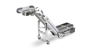 coladas opcional Construida en aluminio extrusionado altura 180 m/m Cinta de goma rugosa poliuretano PUR color gris oscuro Separador de coladas por palas con salida lateral opcional. Potencia motor 0.18 kw. Velocidad