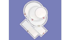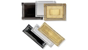 hostelería Salaet Aries - Gráficas Salaet, S.A.: Gráficas Salaet fabrica bandejas de blonda rectangulares y de brazo. Plastificadas en oro, blanco o negro, con el borde calado, es muy resistente y puede