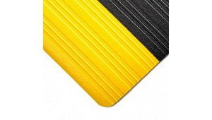 pueden ser amarillos. La superficie está disponible en dos acabados diferentes: tipo 1 estriado y tipo 2 texturizado. Aplicaciones: zonas secas, puestos de trabajo, líneas de montaje, hostelería. (Alfombras industriales)