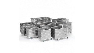 hostelería, desecho de datos, etc. Dispone de 4 ruedas de goma maciza antihuellas, las ruedas giratorias disponen de freno según la normativa de seguridad DIN EN 1757-3. Ofrecemos diferentes