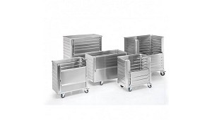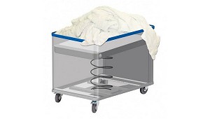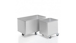 hostelería, etc. Dispone de 4 ruedas de goma maciza anti huellas, las ruedas giratorias disponen de freno según la normativa de seguridad DIN EN 1757-3. Opcionalmente la tapa puede
