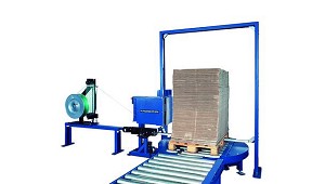 paletizados de diferentes tamaños Tensión ajustable del fleje, soldadura por fricción Diseño compacto (principio de unidad) Fácil de integrar en sistemas de transporte con rodillos Con lanzadera del fleje para