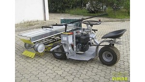 tela recogedora ajustable. - Cepillos especiales para no dañar el fruto. - De muy poca altura. - Motor diesel ( 7cv ). - Arranque eléctrico opcional. Todo ello ayuda a que esta hileradora acabe siendo muy rentrable