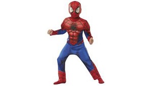 tela. 640841 - Rubies Spain, S.L.U: Disfraz Deluxe de Spiderman infantil compuesto de Jumpsuit con pecho acolchado y máscara de tela. El hombre araña consiguió sus poderes tras ser mordido por una araña
