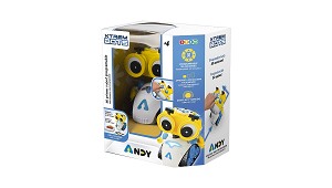 web. - Incluye guía de juego para aprender a programar. - Sonidos y modo baile. - Luz LED. - El robot funciona con 3 pilas ‘AA’ (no incluidas). Incluye: - Andy - 9 tarjetas (15 × 15 cm). - Manual