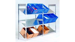 Bito - Bito Sistemas de Almacenaje, S.L.: La estantería montable con estantes inclinados tiene una capacidad de carga por estante de 100 kg. Está compuesta por dos bastidores abiertos, pudiéndose incorporar